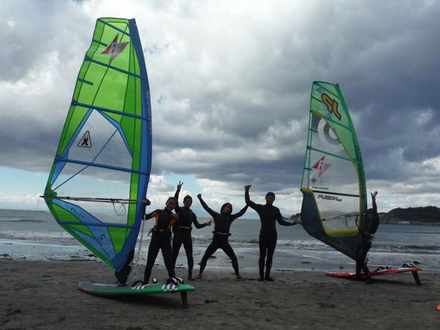 2015年のスタートはウインドサーフィンで始まりました。ウインドのゲレンデ、鎌倉材木座海岸に着くと、やはりいましたこの寒いのに、メラメラ燃える闘魂、ウインドクレージーの面々、素敵な仲間が集まりました!風はあまり吹いていませんがみんな笑顔満々です!